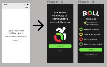 THE CLIENT: Roll Mobility is a pre-seed startup, C2C mobile app that provides wheelchair users accurate and up-to-date information about the physical accessibility of local businesses and restaurants in the community. This information is gathered via in-app reviews submitted from fellow users, which is the core CTA of the app.